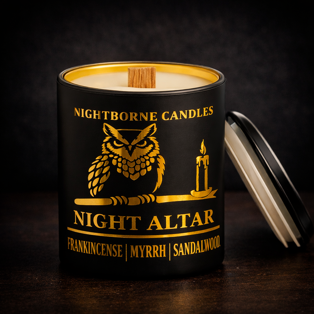 Night Altar layers frankincense and Myrrh with Sandalwood.